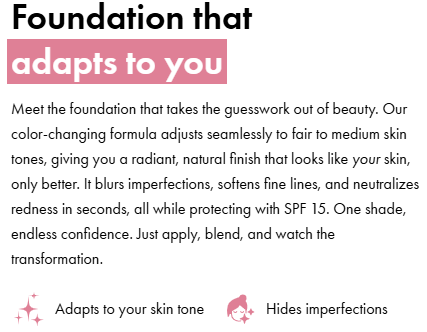 Find your flawless shade with zero risk. Our Changing Foundation comes with a complete satisfaction promise: if your shade isn't spot-on, we'll make it right with a full refund—no questions asked.